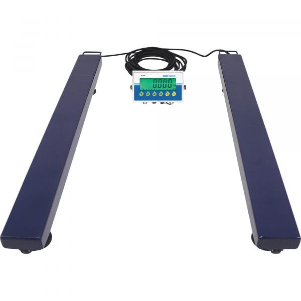 The AE Adams Pallet Beams with Indicator offer fast, precise mobile weighing up to 4400 lbs. (2000kg) for industrial and commercial environments. The beams can be extended and retracted depending on the size of the object. These beams include built-in wheels and handles, so they’re easy to move around. Enclosed channels with high-quality load cells provide accurate, repeatable measurements and are designed to withstand the rigors of constant warehouse use. Use the AELP with the GK or AE403 indicator for the desired range of features. AELP beams are equipped with approximately 15ft. (4.5 m) of shielded cable. AELP pallet beams make ideal cattle scales that can be easily combined with weighing platforms, cattle crushes or cages by mounting these on top of the beams for effective livestock weighing.
