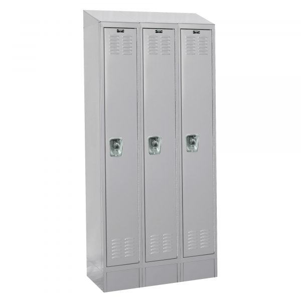 Fully-Assembled, Fully-Loaded and ready to use right out of the box! Ready-Built II lockers ship complete slope tops, closed metal base and include a master-keyed controlled combination padlock for each locker door so lockers are ready to use the minute they arrive. Our multi-point gravity lift-type latching for wardrobe lockers assures a secure locker while box lockers offer a simple thru-the-door finger pull single-point latch. All doors are louvered for ventilation and include a continuous piano hinge to insure a worry-free door operation. Wardrobe doors include a stainless steel recessed handle allowing the included padlock to sit fully-recessed into the door for added safety while reducing vandalism and improving overall locker appearance. Wardrobe lockers allow for larger personal storage while box lockers are perfect for storing of smaller personal items. Order 3-wide units for best value and order 1-wide units where needed to complete your layout. Lockers ship fully-assembled. Choose from three great color choices: Parchment, Hallowell Gray or Marine Blue.