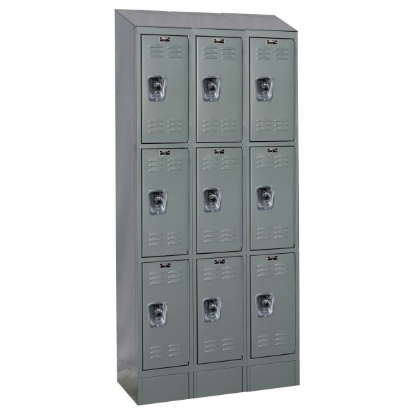 Fully-Assembled, Fully-Loaded and ready to use right out of the box! Ready-Built II lockers ship complete slope tops, closed metal base and include a master-keyed controlled combination padlock for each locker door so lockers are ready to use the minute they arrive. Our multi-point gravity lift-type latching for wardrobe lockers assures a secure locker while box lockers offer a simple thru-the-door finger pull single-point latch. All doors are louvered for ventilation and include a continuous piano hinge to insure a worry-free door operation. Wardrobe doors include a stainless steel recessed handle allowing the included padlock to sit fully-recessed into the door for added safety while reducing vandalism and improving overall locker appearance. Wardrobe lockers allow for larger personal storage while box lockers are perfect for storing of smaller personal items. Order 3-wide units for best value and order 1-wide units where needed to complete your layout. Lockers ship fully-assembled. Choose from three great color choices: Parchment, Hallowell Gray or Marine Blue.