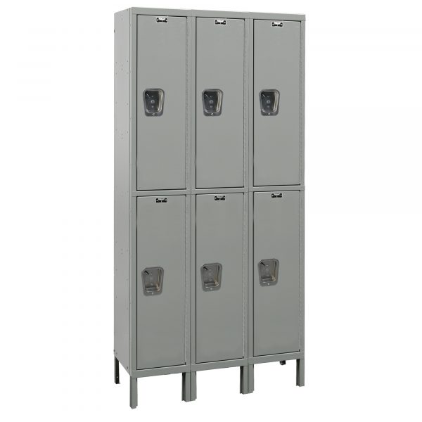 These single-point latch lockers offer maximum door strength by incorporating a welded-in full-height door stiffener providing a torque-free door. A continuous piano hinge insures worry-free door operation. The no moving parts latching mechanism reduces life-cycle costs. The stainless steel recessed handle allows the lock to sit fully-recessed into the door for added safety while reducing vandalism and improving overall locker appearance. Wardrobe lockers allow for larger personal storage while box lockers are perfect for storing of smaller personal items. Locks are not included. Order 3-wide units for best value and order 1-wide units where needed to complete your layout. Lockers are available to ship fully-assembled or knock-down. Choose from tow popular colors: Parchment or Hallowell Gray.