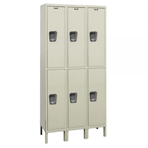 These single-point latch lockers offer maximum door strength by incorporating a welded-in full-height door stiffener providing a torque-free door. A continuous piano hinge insures worry-free door operation. The no moving parts latching mechanism reduces life-cycle costs. The stainless steel recessed handle allows the lock to sit fully-recessed into the door for added safety while reducing vandalism and improving overall locker appearance. Wardrobe lockers allow for larger personal storage while box lockers are perfect for storing of smaller personal items. Locks are not included. Order 3-wide units for best value and order 1-wide units where needed to complete your layout. Lockers are available to ship fully-assembled or knock-down. Choose from tow popular colors: Parchment or Hallowell Gray.