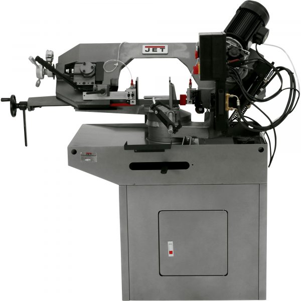 This 10in. x 16in. JET Horizontal Mitering Bandsaw has a unique design that features a swiveling head while the base remains stationary. This allows the stock to remain in the same position while making accurate crosscuts and miters. Powerful 2 HP, 460V, 3-phase motor. Item too large for lift gate. Forklift required for on site unloading.