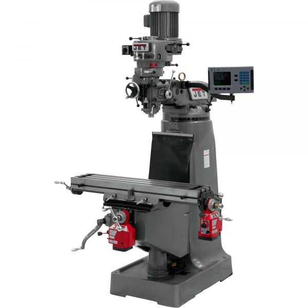 This JET Milling Machine with 3-Axis ACU-RITE 203 DRO and X and Y-Axis Powerfeeds has 3-stage power downfeed with auto stop, high precision Class 7 spindle bearings and the rugged stability of Meehanite castings to ensure you get everything you need. The precision bored and honed milling heads ensure consistent, quality cuts. An internally cooled spindle head prevents seizing. Item too large for lift gate. Forklift required for on site unloading.