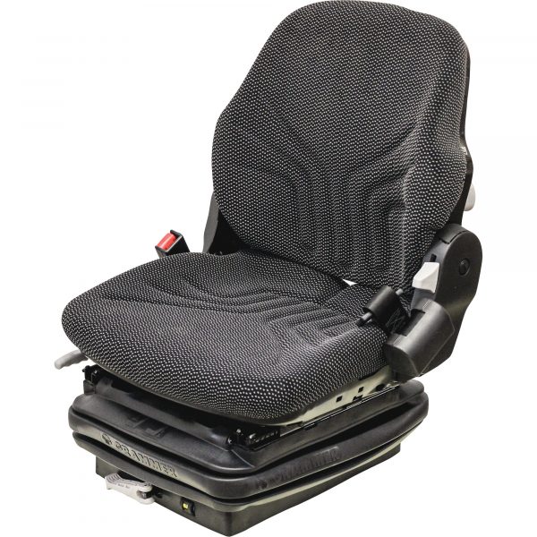 This top-of-the-line K&M Uni-Pro Grammer Construction Mechanical Suspension Seat assembly with fabric cover helps reduce seat vibration in forklifts, tractors, and a variety of the most demanding construction applications. Fits compatible Case wheel loaders, Hamm rollers, and John Deere backhoes. 26in.W x 26in.D x 23in.H. Multi-tone gray.