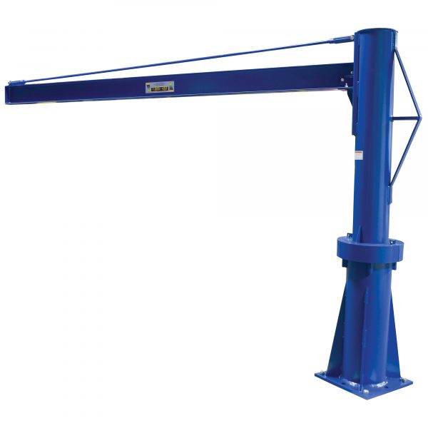 A multi-station transportable Jib crane is designed for use in multiple locations, includes jib crane and one base socket. Extra base sockets may be purchased for use in other locations. Friction brake design allows positive locking and controlled rotation of heavy loads. Standard six (6) Inch high I-beam with three (4) Inch flange width. Rugged welded steel construction. Requires reinforced concrete pad for installation. Hoist and trolley sold separately.